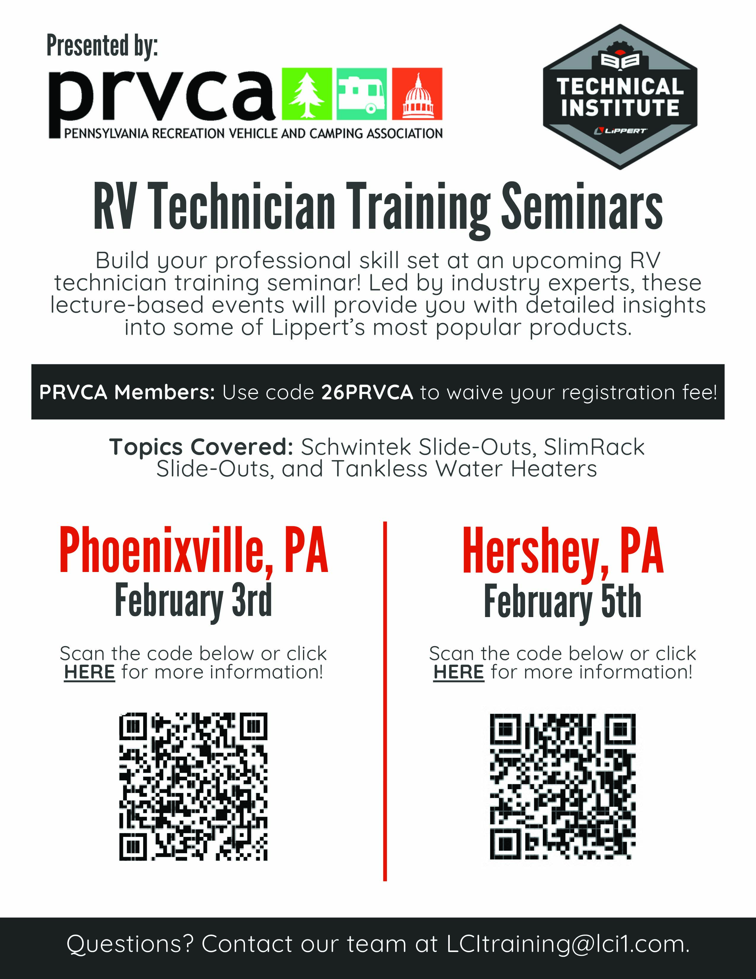 Registration now open: PRVCA Hershey Technician Seminar February 5, 2026